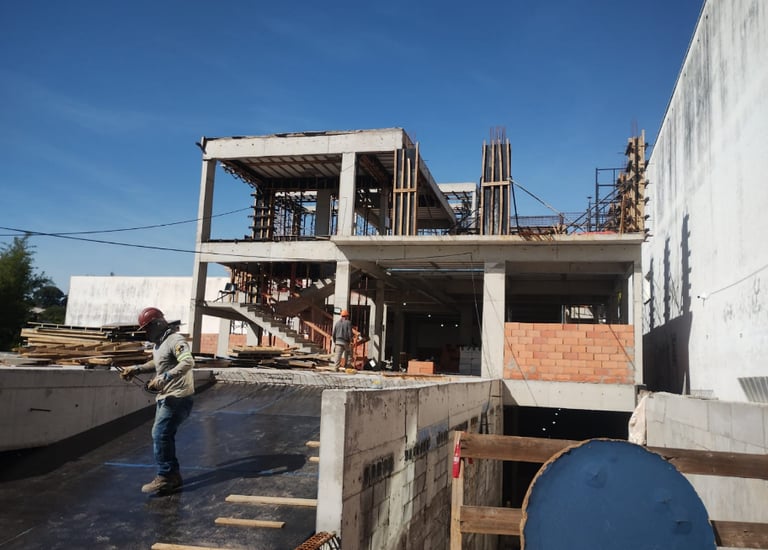 Obra em andamento no Hospital ONCOITU, em Indaiatuba/SP, executada com alto rigor técnico, planejamento e atenção aos padrões hospitalares.